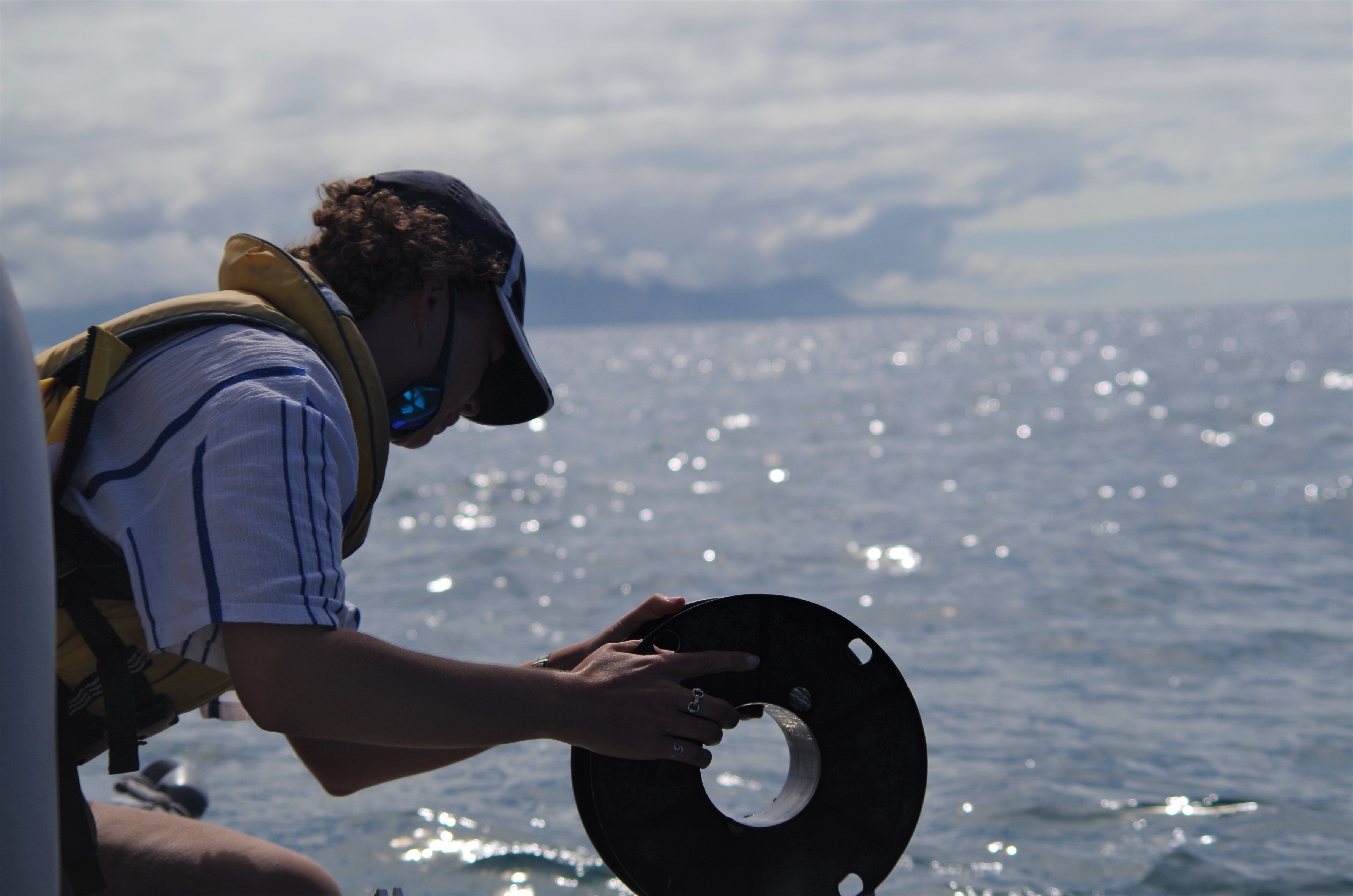 Rose Fleming checking water clarity with Secchi disk_Chloe Cargill April 12, 2019April 12, 2019 / natashavannetten