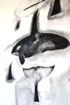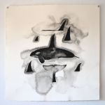 - Orcinus Orca (Orca Whale), 15″ x 15″, ink and sea water on paper, 2016 (sold)