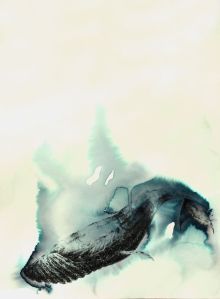 - All Astir, 11″x15″, ink and sea water on paper, 2015