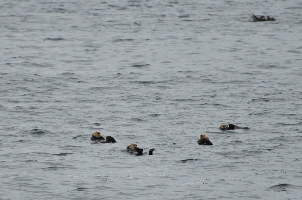 The first marine mammals we encountered were sea otters. This was the first time I’ve seen sea otters. Sea otters used to be plentiful along our coasts, however the last one was shot in 1929/30. In the late ’60’s and early ’70s there was a re-population effort made by the Canadian and US governments. They took otters from Alaska and introduced them to a location on the northwest coast of Vancouver Island. Thanks to this project, the sea otter population is establishing themselves and expanding their territory. It is because of that project that I was able to see sea otters for the first time. During the trip we were told that the individuals we observed were males (the females preferring other locations) and that you can tell who was the most “distinguished” in years. As they age, their face becomes whiter. With the reintroduction of sea otters (a previously native species), there are visible impacts on the marine environment. Sea otters love to eat sea urchin, which love to eat kelp. Now that the sea otters are back and happily munching away on these spiny treats, the kelp forests are changing and growing. This of course has many subsequent impacts on the marine environment, food chain and even humans that depend on the ocean for their livelihood. A complex story for sure, but also a hopeful one!