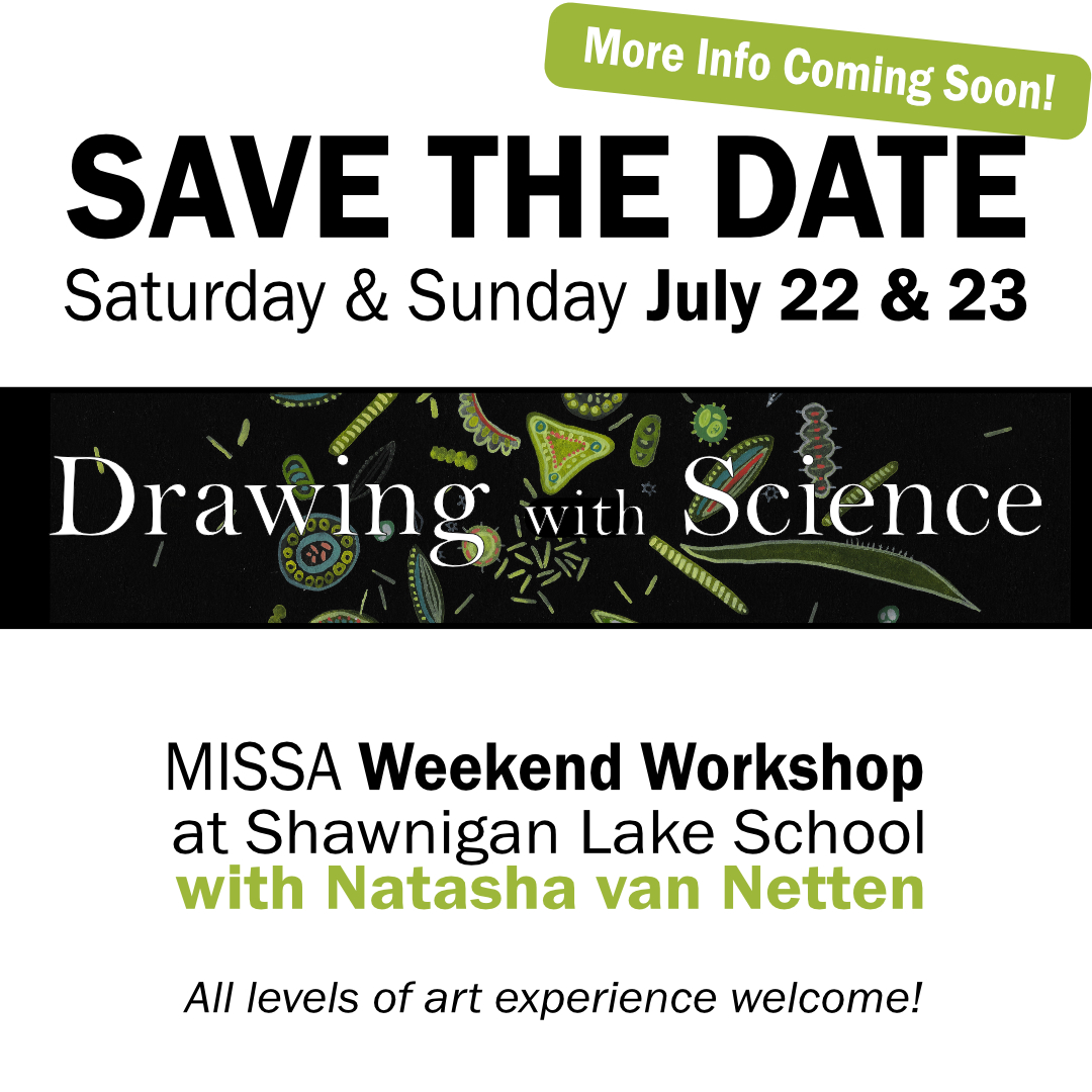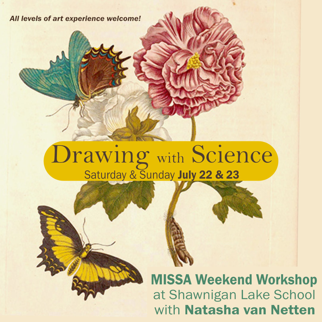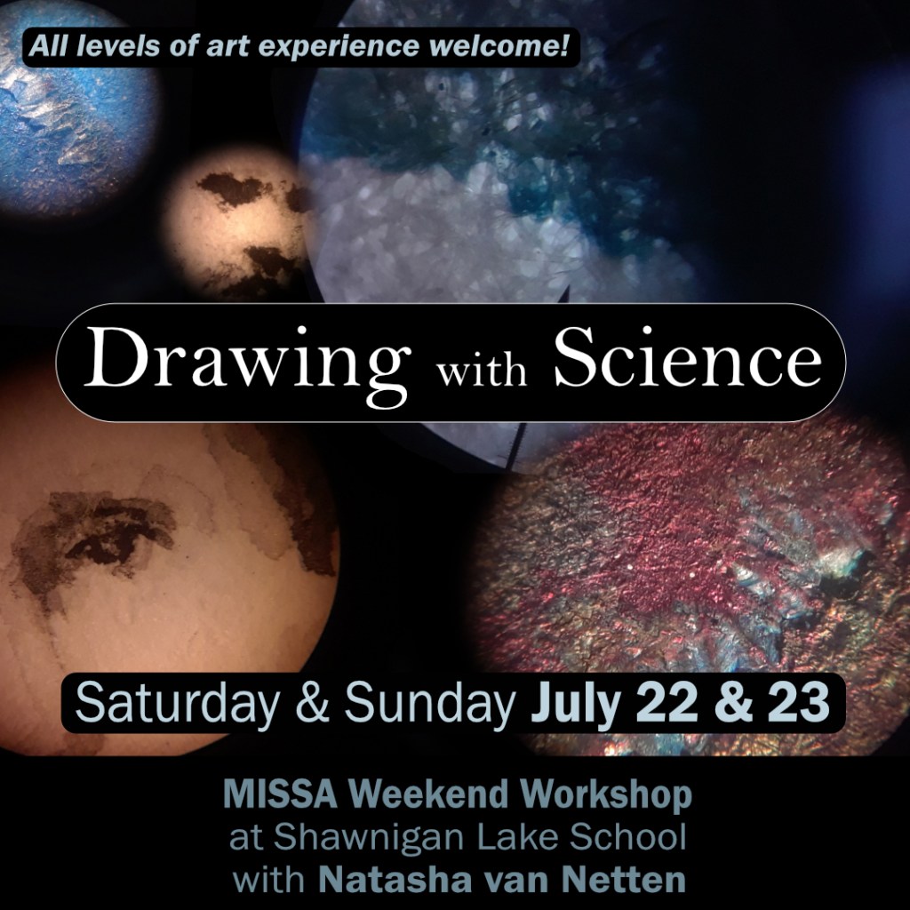 I will be instructing a weekend workshop with MISSA (Metchosin International Summer School of the Arts) in July 2023. Join me for a weekend of ‘Drawing with Science’! Workshops take place at the beautiful location and facilities of Shawnigan Lake School.