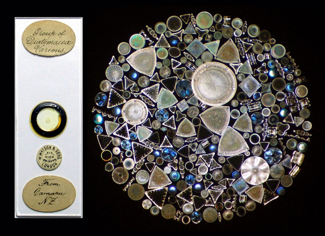Some ideas may come from the miniature: Watson & Sons, London, c. 1880s, an arrangement of selected diatoms on a microscope slide