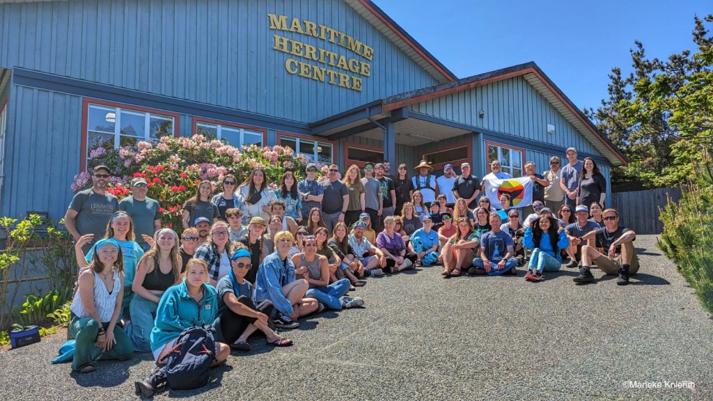 We were just sitting down to do a visual identification quiz about dolphins and porpoises, when someone yelled “Dolphins!” And yes, outside our classroom, which was located at the Maritime Heritage Museum in Campbell River, was a pod of dolphins! The timing couldn’t have been better. We all ran onto the balcony and watched the dolphins (Pacific white-sided dolphins), who were probably hunting fish in the channel as the tide turned. Later that day we were interrupted again. “Orca!” And we all stampeded onto the balcony and watched killer whales across the channel. The next day, as if this couldn’t get any better, someone yelled, “Humpback!” And yes, back to the balcony we went. One of the staff members used a pair of binoculars and could see that the boat in the channel had a whale warning flag up—alerting other boats that there were whales in the area, so they could slow down and could avoid a possible collision situation. Not bad cetacean action for a purely classroom-based course! Needless to say, I was absolutely thrilled!