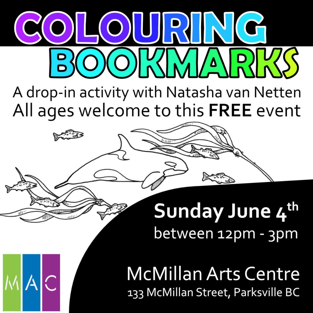 On Sunday June 4th between 12-3pm, I will also be in the gallery and I have prepared a free activity for those who would like to participate: Colouring Bookmarks! Colouring stations will be set up in the gallery, where you can spend a little time making a unique bookmark to take home.