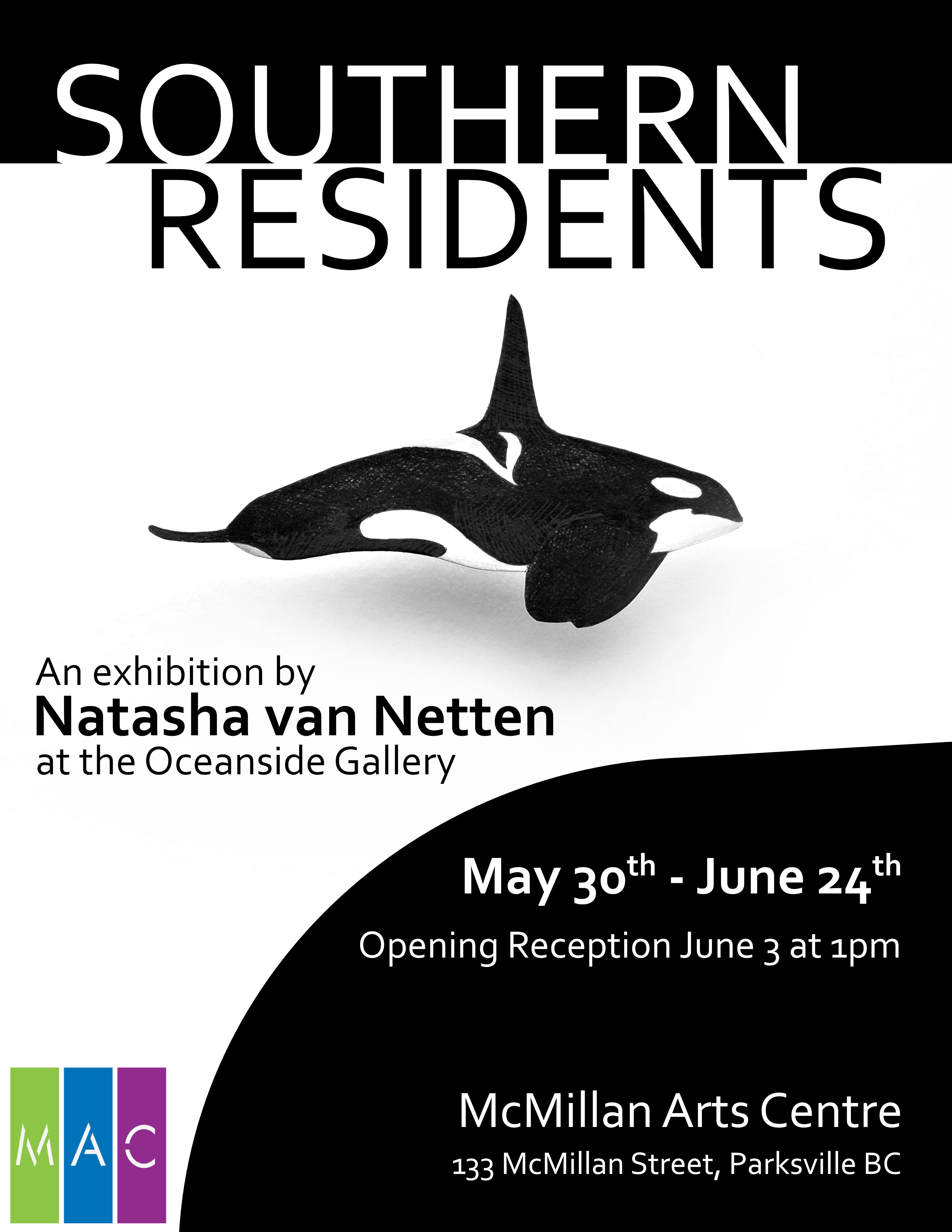 I am thrilled to announce my newest exhibition, Southern Residents, at the McMillan Arts Centre in Parksville, BC!