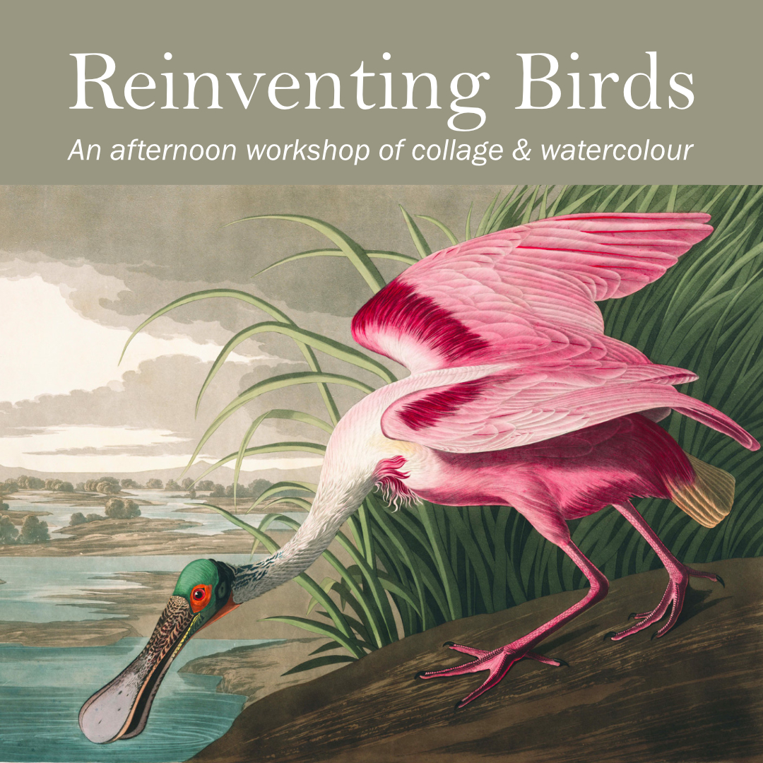 This workshop will focus on creating artworks inspired by ornithology—the study of birds—with a whimsical twist. You will use collage as a starting point to develop a composition because collage offers an immediacy that allows you to begin a work without necessarily having a specific idea. You will create two artworks in the duration of the workshop: a collage based on an Audubon image, followed by a watercolour painting influenced by your collage. This workshop will awaken your imagination while revealing the freedom of collage-making and how to use watercolour to interpret forms. Suitable for all levels. All supplies included. Click here for more info & to register