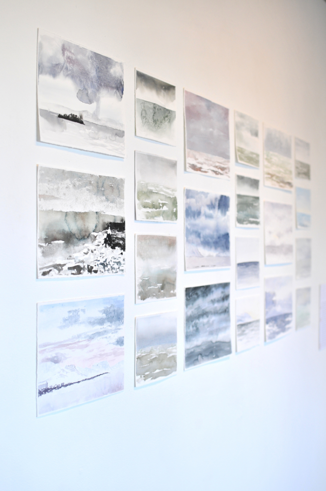In DRIFT, I explore the continual movements of the ocean: from the glassy barrier of the surface to the soup-like complexities of the seawater below. The show will contain new works in and new mediums (for me), experimental paintings made with winter weather in Iceland and a series of conceptual seascapes that explore the flux of the ocean’s surface. These works will be exhibited along with other pieces that probe our relationship to the sea.