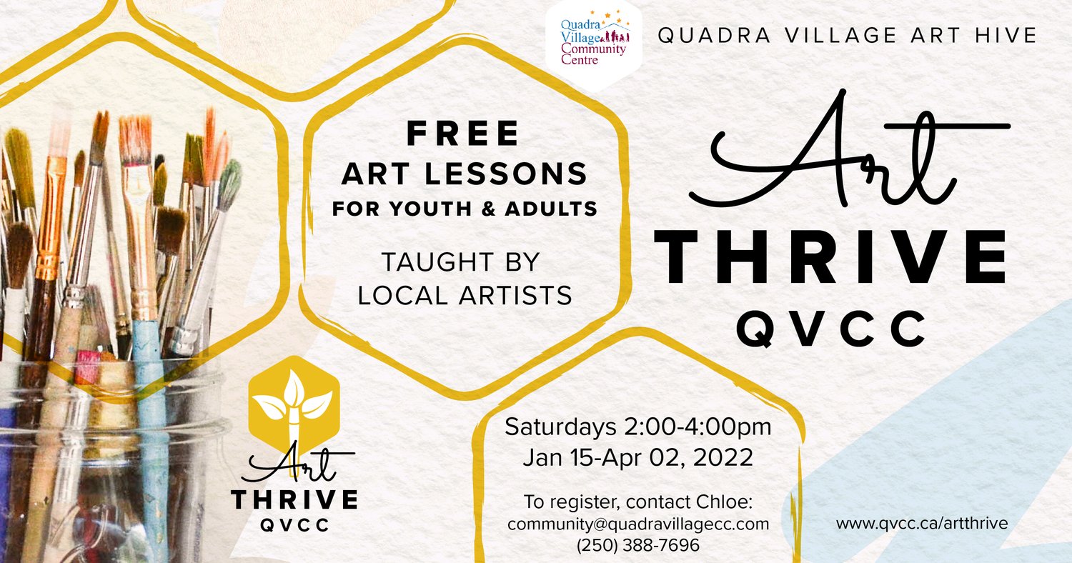 This past Saturday I had the pleasure of instructing an afternoon workshop with the Quadra Village Community Centre. This workshop was part of Art Thrive, a program created and run by the QVCC and funded by the BC Arts Council. Art Thrive provides art classes to youth and adult residents of Quadra Village (and beyond) free of charge, including materials. This program helps build a sense of community, while offering recreational, stress-reducing activities and bringing encouragement to individuals.