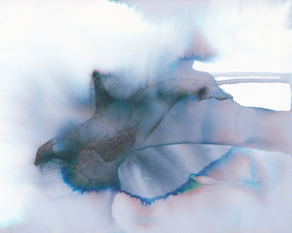 I have three works available in the auction. Two seawater and ink limited edition giclée prints from drawings I created in Iceland and an original gouache on embossed paper contour chart based on the southern gulf island network. You can find these items by searching my name on the auction page. I am donating 80% of the sale to Pacific Wild (to help cover my printing and supply costs).