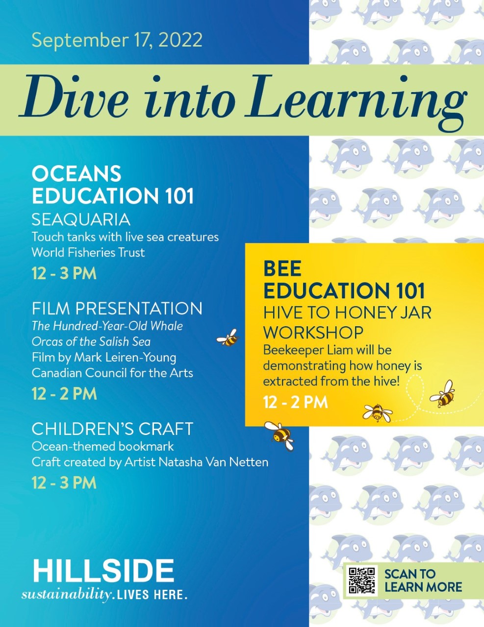 Scroll below to see a list of the activities and times. Find me at the Activity Table with colour-your-own-bookmarks. I had so much fun creating these for the event! I made three different designs: tide pool ecosystem, cetaceans of BC and a fun, folding bookmark that reveals what is hiding below the surface of the water. Bring your children, nieces, nephews and their friends… I have LOTS of bookmarks that need colouring! =)