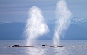 USA, Alaska, Chatham Strait, Humpback whale (Megaptera novaeangliae) blow August 21, 2016 / natashavannetten